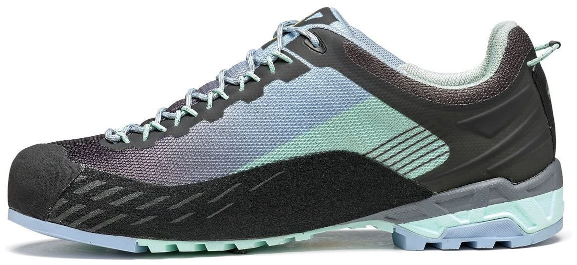 The Asolo/Vibram AG outsole features a self-cleaning design and excellent climbing area, it also uses the MegaGrip compound which offers excellent grip in dry and wet terrain. To complete the model the Pu rand all-around for additional protection, the cordon lacing system and the thermo-shaped toungue for a fast and precise fit